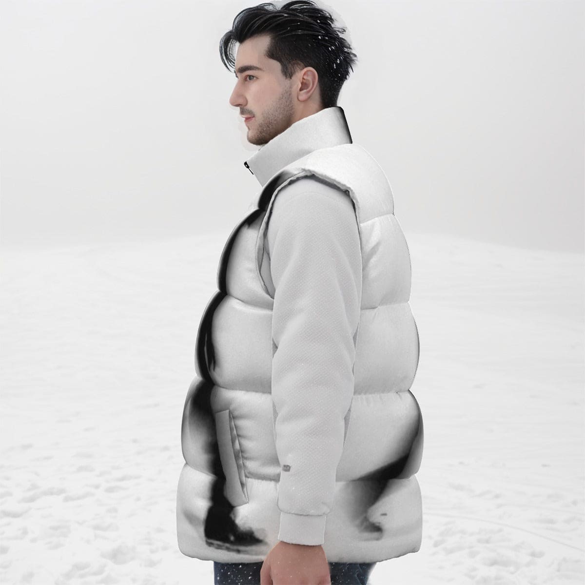Experience the excitement of the unknown in this tough, wind-resistant puffer vest. The durable outer shell effectively blocks out pesky feathers from entering, keeping you warm in any weather. Packed with 90% premium white duck-down, this vest is lightweight and snug. With a dual zipper closure and convenient side pockets, you can confidently battle the elements in style with this all-over print unisex down vest.